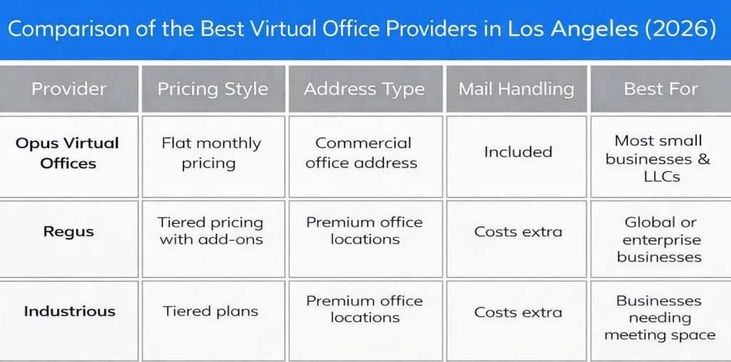 Los Angeles virtual office services can support registration, mail handling, and client relationships for SMBs and LLCs. This guide breaks down the best virtual office providers in Los Angeles based on pricing, address legitimacy, mail handling, phone services, and meeting room access.